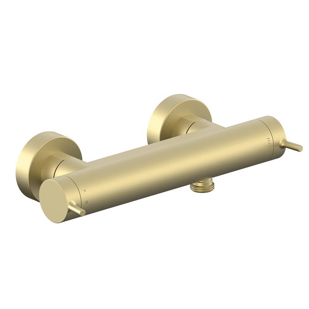 Transform your daily shower experience with the Vado Safari Lever Satin Brass exposed thermostatic bar shower valve.
