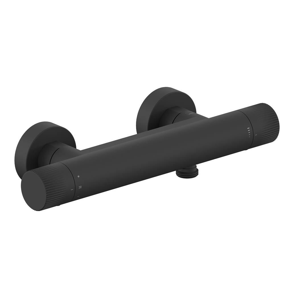 This contemporary black bathroom shower valve features a sleek, modern design that seamlessly blends functionality with style. The leverless fluted handles not only provide a unique visual appeal but also ensure effortless control over water temperature and flow. Crafted from high-quality materials, this shower valve is designed to withstand the rigours of daily use while maintaining its elegant finish. The exposed thermostatic valve guarantees a consistent water temperature, offering you a luxurious shower experience every time.