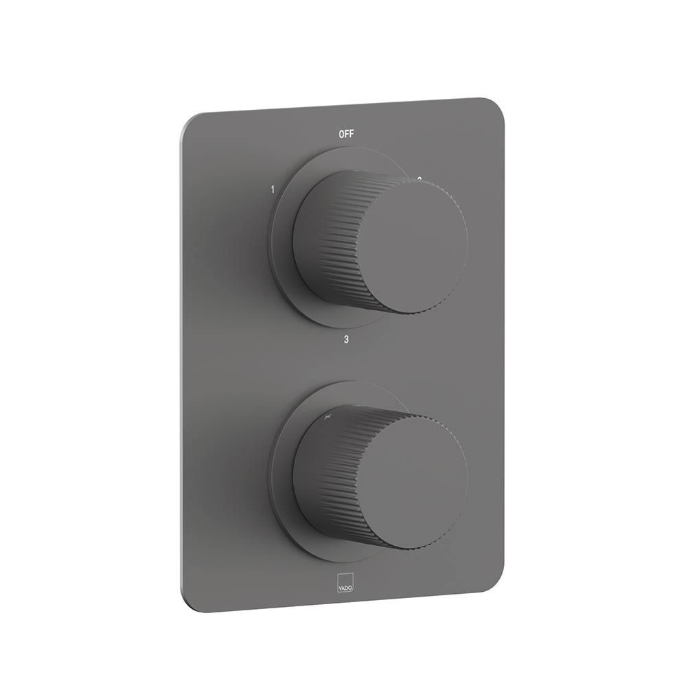 Transform your shower experience with the Vado Safari Leverless Fluted Pewter thermostatic shower valve.