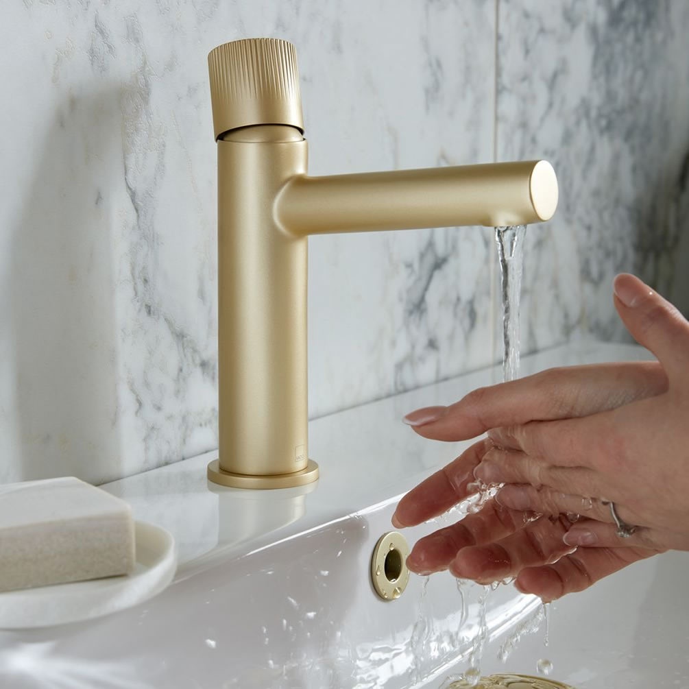 Crafted with meticulous attention to detail, this basin monobloc features a unique leverless design that not only enhances its aesthetic appeal but also offers effortless operation. The fluted texture adds a touch of sophistication to the design, whilst providing a more comfortable when using. The satin brass finish exudes warmth and luxury, making it a perfect match for both contemporary and classic interiors. With its contemporary, single-handle control, you can easily adjust the water temperature and flow, ensuring a delightful washing experience every time. It has been designed to complement the Safari fluted furniture and showers for a beautiful look.