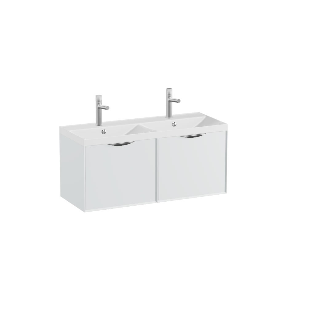 The twin basin adds a touch of elegance and practicality, allowing for a seamless experience for you and your family every time you wash your hands or freshen up. The luxurious design is available in two sleek finishes, choose from gloss white or matching arctic white matt mineral, both options come with two single tap holes (one tap hole on each basin).