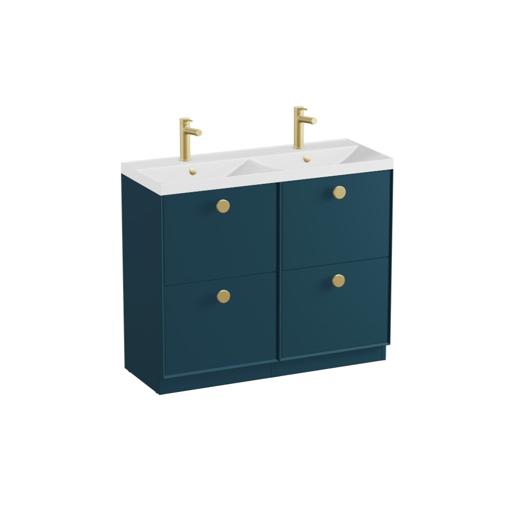 This stunning vanity unit features a captivating blue design that effortlessly combines modern aesthetics with timeless sophistication. The rich Atlantic Blue finish is complemented by a luxurious twin basin, creating a striking focal point that enhances any decor. With a generous 1000mm width, this vanity unit provides ample space for your daily essentials while maintaining a sleek and streamlined appearance. The twin basin offers a seamless look, making it easy to clean and maintain, while the durable construction ensures longevity and reliability. It is available in two luxurious finishes, choose from gloss white or arctic white matt mineral, both options come with one pre-drilled tap hole with overflow on each basin.