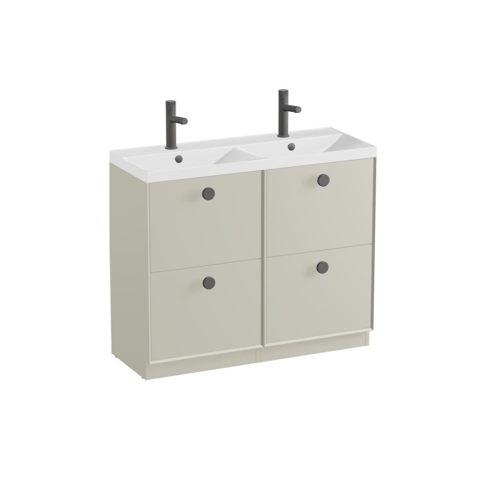 Transform your bathroom into a sanctuary of style and functionality with the Vado Safari Smooth 1000mm Cashmere Floor mounted vanity unit & basin.