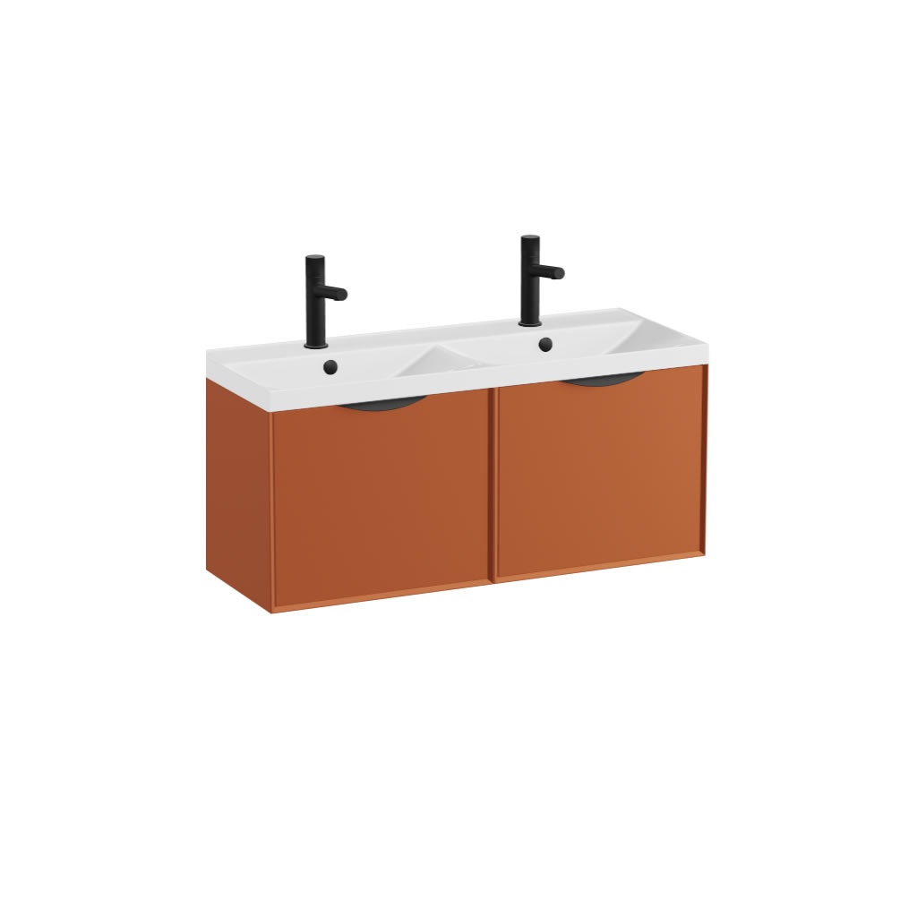 This exquisite double sink unit features a sleek, modern design that seamlessly integrates into any contemporary bathroom decor. The terracotta finish adds a warm, earthy tone, creating a welcoming atmosphere while the white basin provides a striking contrast that enhances the overall aesthetic. With ample storage space, the vanity unit features two soft closing drawers and is designed to keep your bathroom essentials organised and easily accessible, ensuring a clutter-free environment.