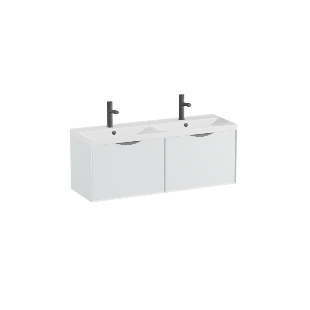 This stylish vanity unit features a sleek, minimalist design that seamlessly integrates into any modern decor. The pristine Arctic White finish not only enhances the aesthetic appeal but also ensures easy maintenance and durability. With its wall-hung design, this vanity unit creates an illusion of space, making it perfect for both compact and expansive bathrooms. The smooth surface is complemented by a stylish twin basin, providing a touch of sophistication while offering practical convenience for daily use. The luxurious basin is available in two sleek finishes, choose from gloss white or matching arctic white matt mineral, both options come with two single tap holes (one tap hole on each basin).