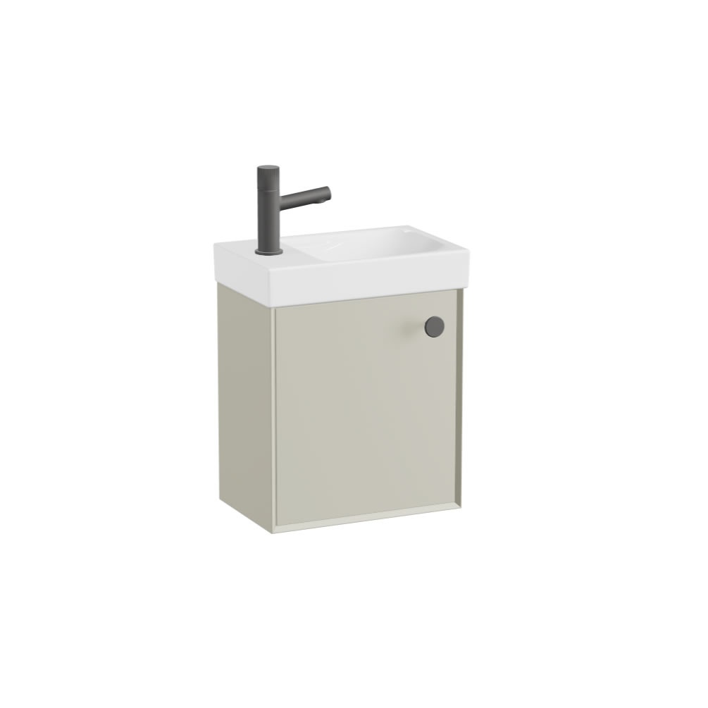 Transform your compact bathroom space with the Vado Safari Smooth 400mm Cashmere wall hung cloakroom vanity unit & basin.