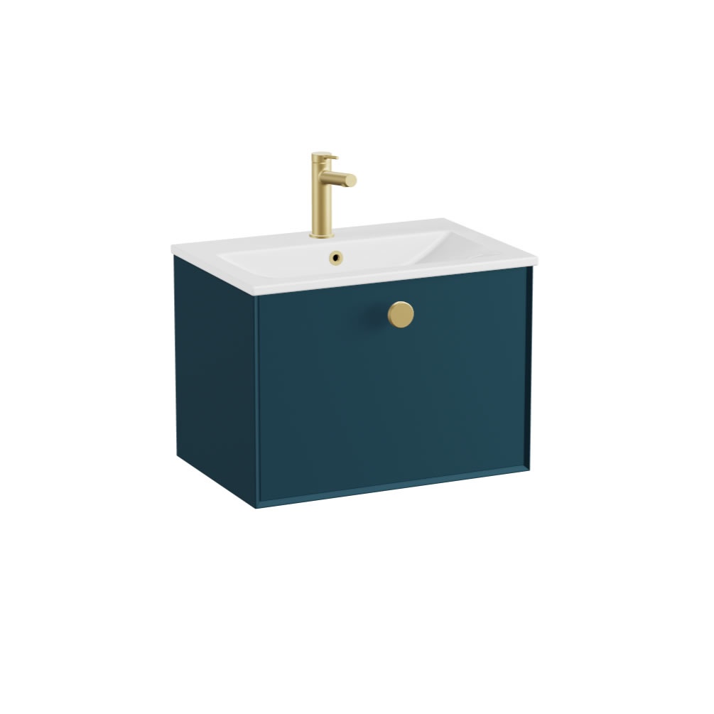 Transform your bathroom into a sanctuary of style and sophistication with the Vado Safari Smooth 600mm Atlantic Blue wall hung vanity unit & basin.