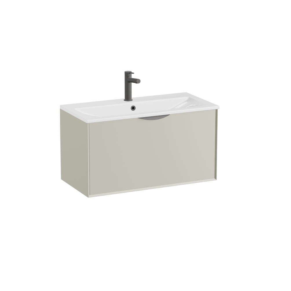Transform your bathroom into a sanctuary of style and functionality with the Vado Safari Smooth 800mm Cashmere wall hung vanity unit & basin.