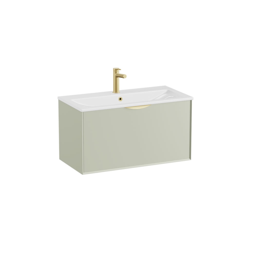 Transform your bathroom into a sanctuary of style and sophistication with the Vado Safari Smooth 800mm Sage Green wall hung vanity unit & basin.
