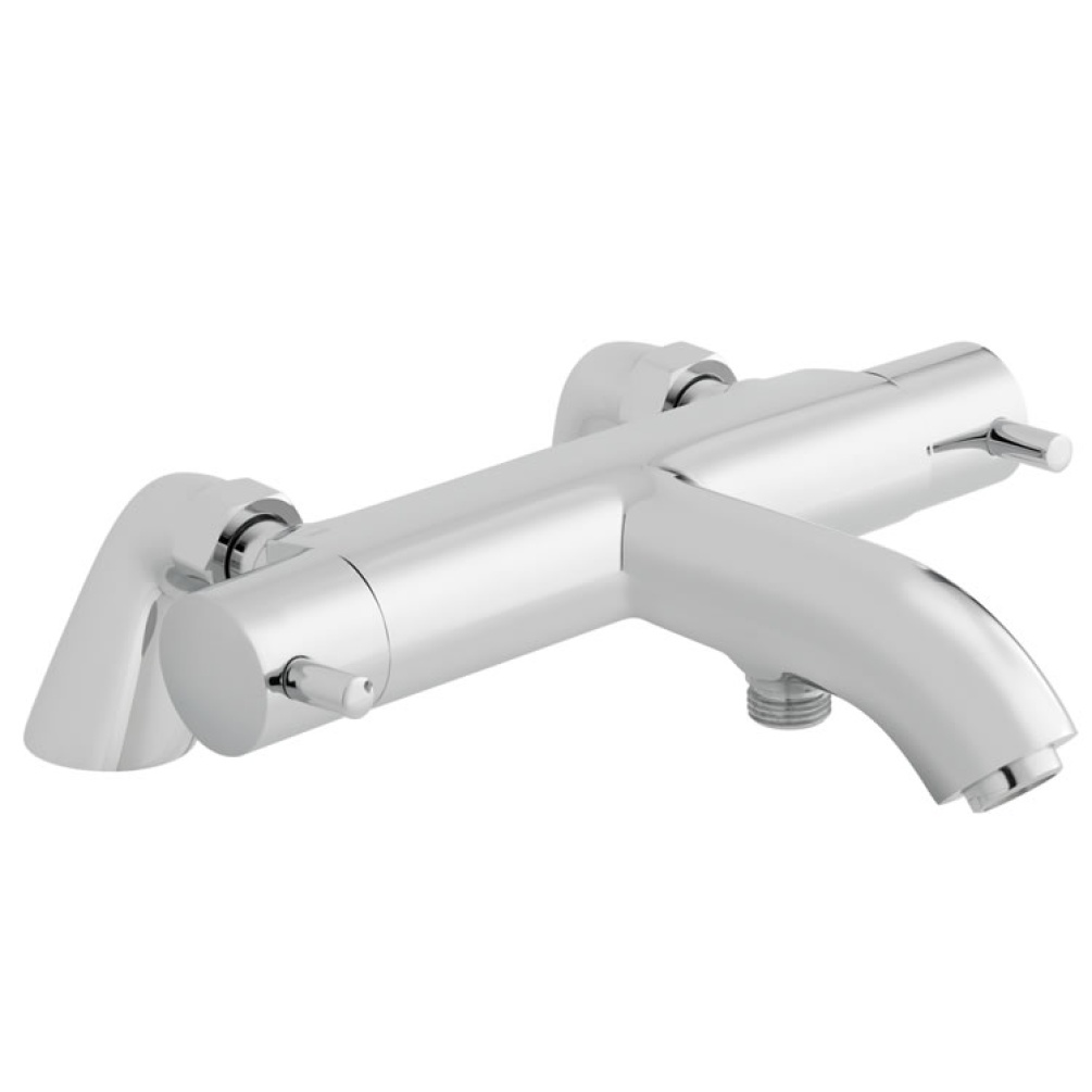 This elegant bath mixer features a simple two-handle build, with separate controls to operate the water flow and temperature. Its chrome finish adds sleek, dazzling polish, emphasising the sleek design.
