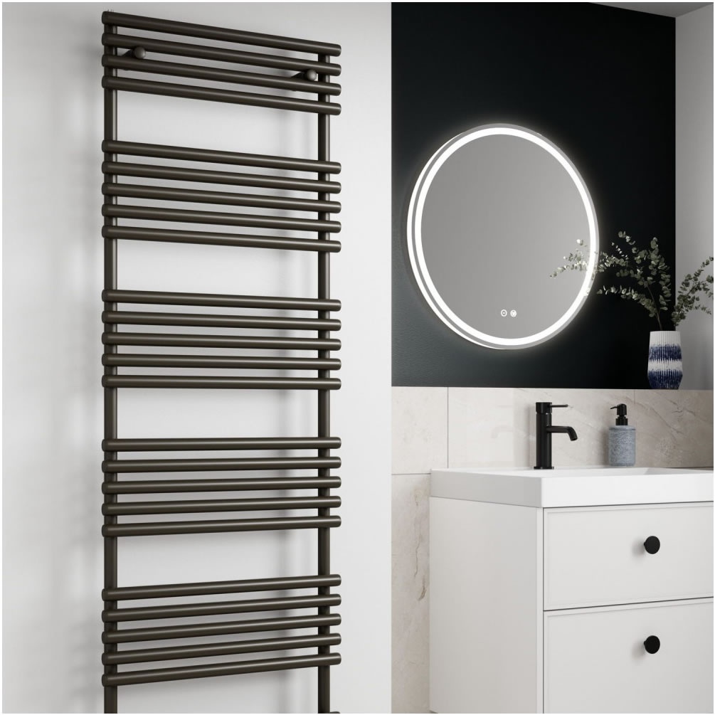 Designed as the focal point for your modern bathroom space, this assertive towel radiator brings just the right amount of swagger. Forged from impervious steel and adorned with a darkly gleaming bronze finish, this model exudes commanding presence and ultra-contemporary style. Better still, it's no slouch in the heating department either. Making full use of its impressive 1355 x 496mm frame, this ladder radiator delivers over 600 watts of balmy, mood-lifting warmth.