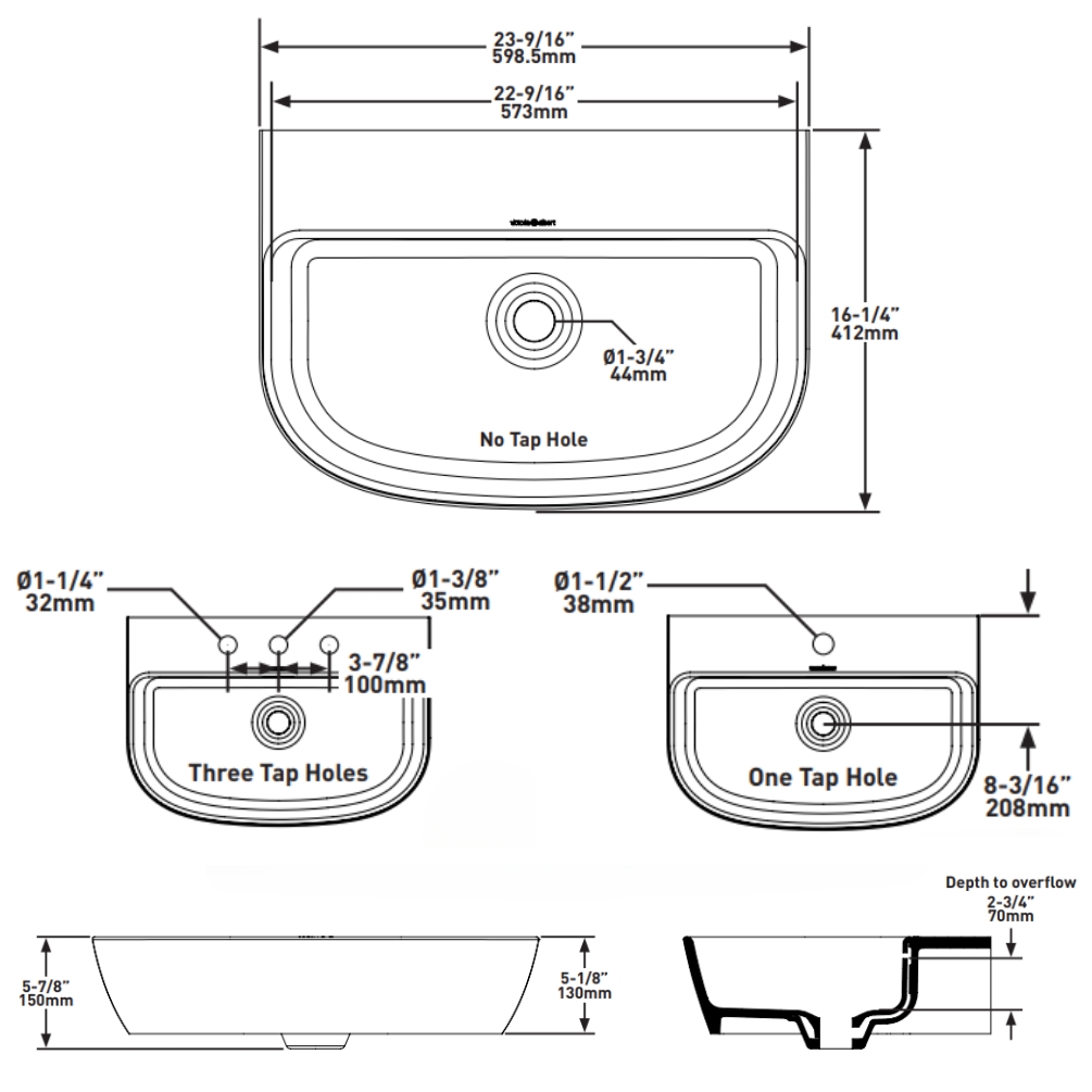 - Please Note: Taps and wastes are sold separately.