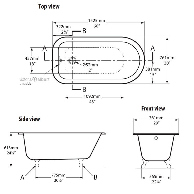 - Available ball & claw feet finishes: Quarrycast, white metal, polished chrome, polished brass, polished nickel and brushed nickel - Please select required finish from the option