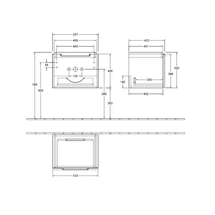This practical vanity unit from Villeroy & Boch features a single tap hole basin with a choice of finishes and a single, soft closing drawer that will transform any contemporary bathroom.