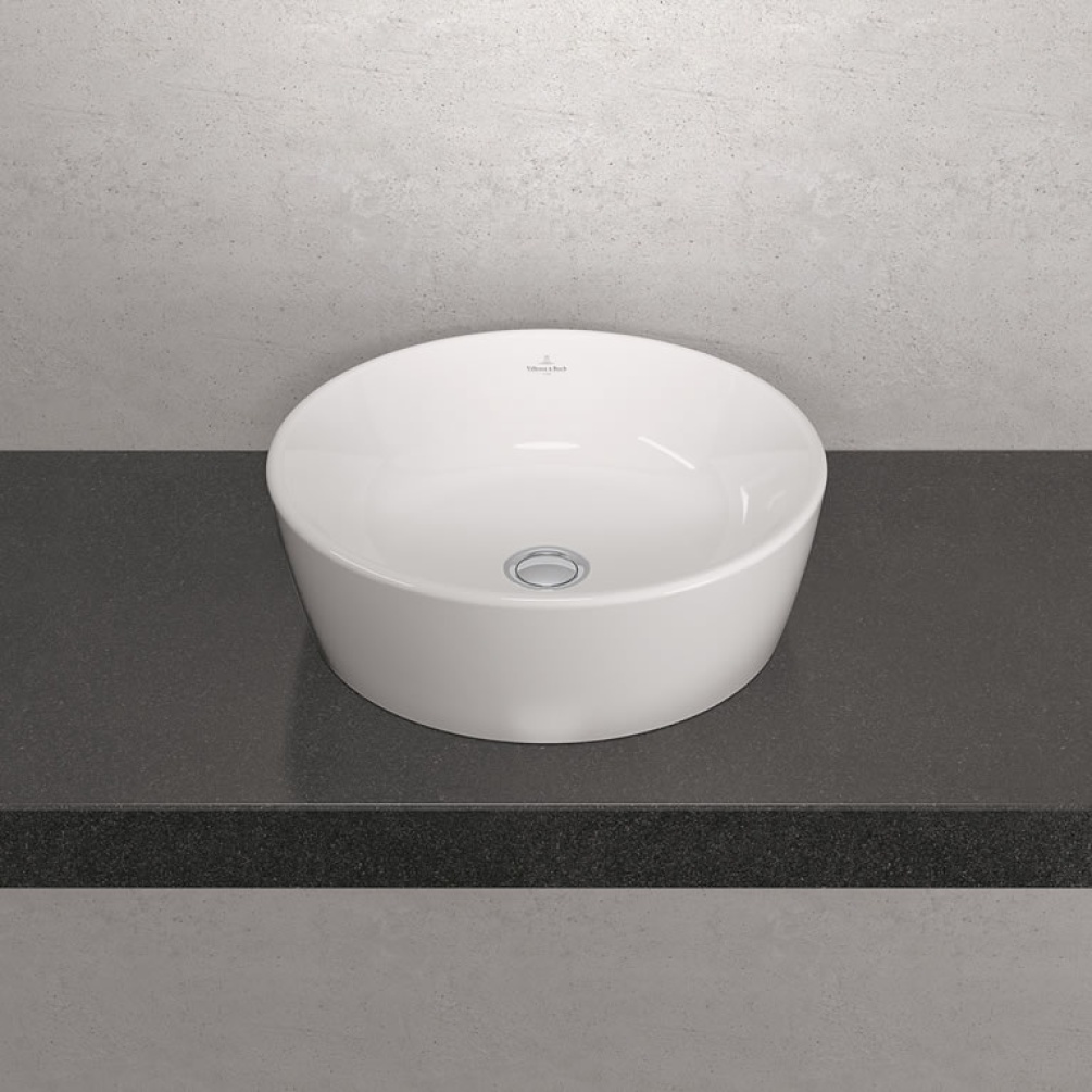 With its elegant shape and fine Villeroy & Boch construction, this round countertop basin is a true bathroom statement piece.