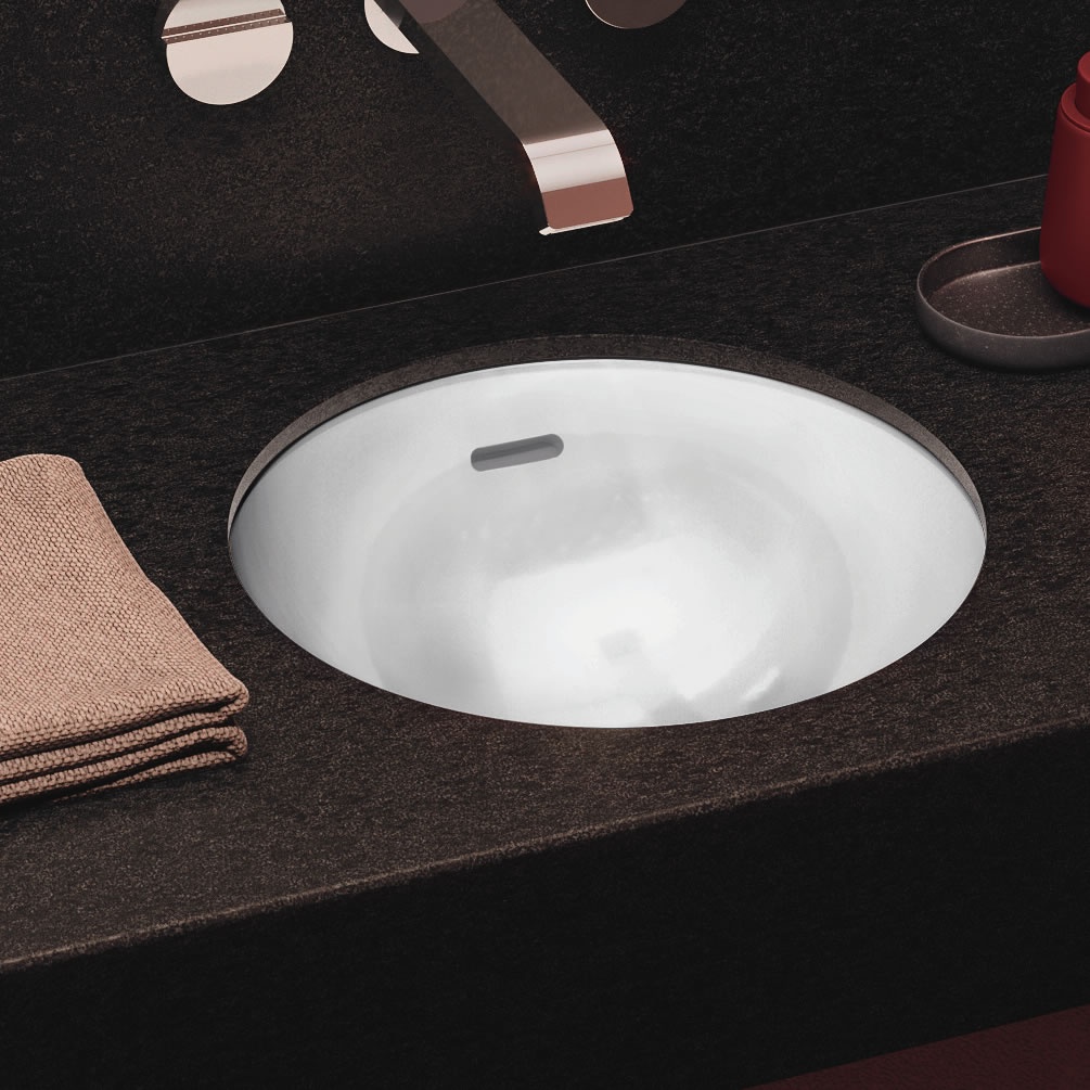 Measuring in at just 380mm in diameter, this glossy white basin offers a compact solution for any smaller bathroom setting. It's built from an exclusive V&B ceramic called TitanCeram, which uses top-quality natural materials to ensure exceptional strength and durability. As an undermount sink, this model is designed to sit inside a surface, creating a completely recessed basin fixture.