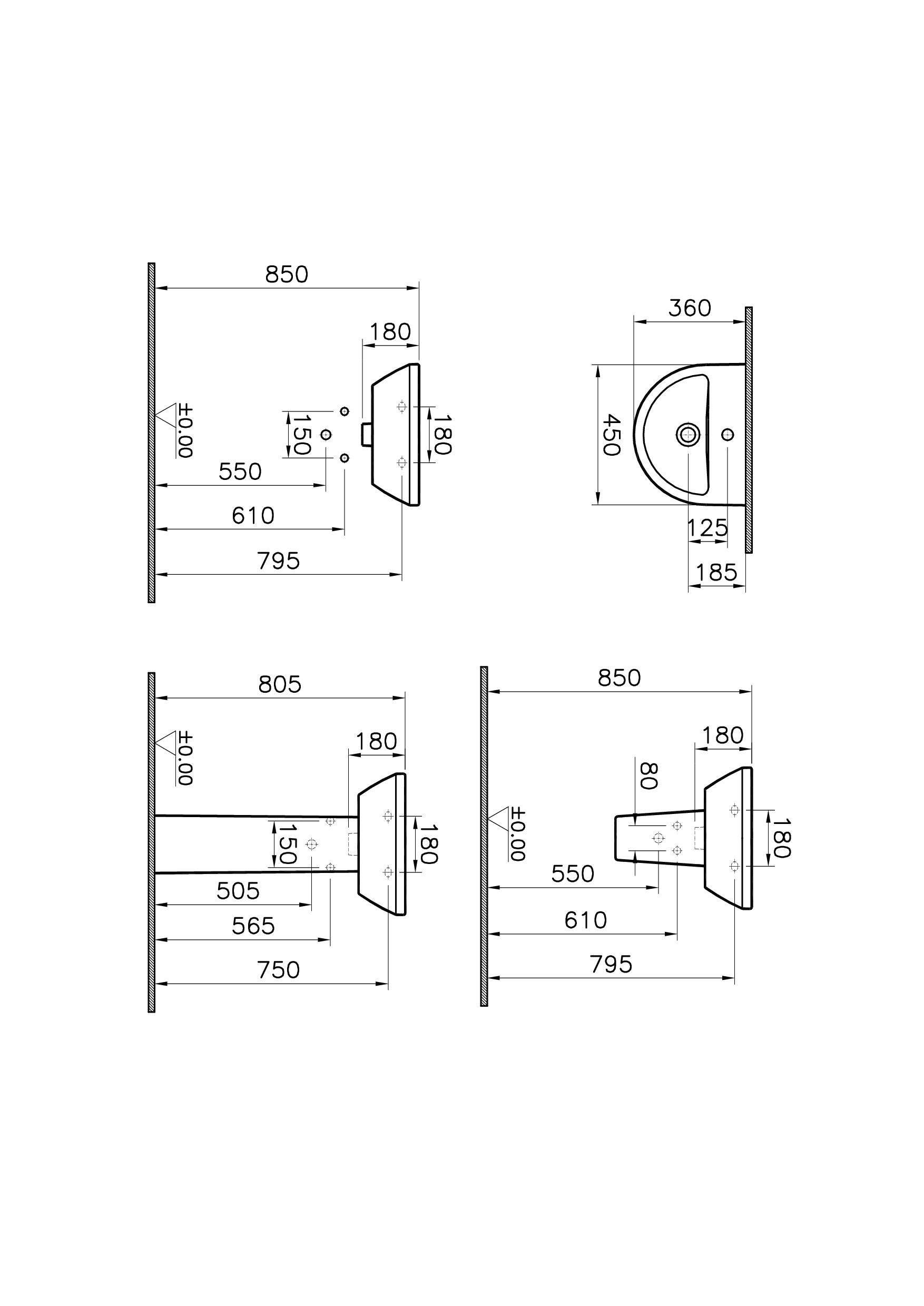 With minimal fuss, the VitrA Integra Round 450mm x 360mm Wall-Hung Basin sits confidently in any modern bathroom.