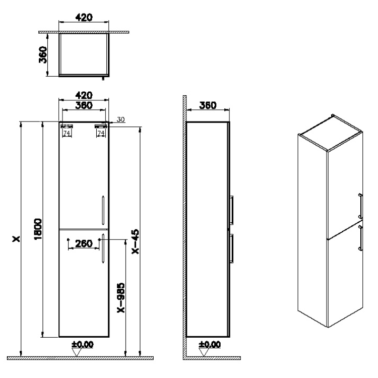 - Dimensions: 400mm width x 1800mm height x 350mm depth