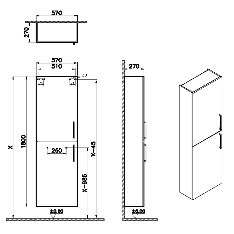 - Dimensions: 550mm width x 1800mm height x 250mm depth
