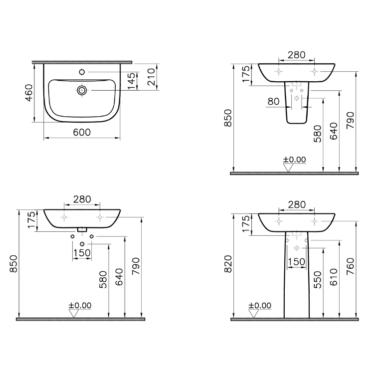 Measuring 600mm in width and projecting 460mm from the wall, this rectangular basin is softened by its smooth edges, mitigating its traditional design with curves in place of angular details. Suitable for floor standing or wall mounted installation, this cloakroom washbasin can be coupled with either a full pedestal or semi pedestal to give them their total heights of 820mm and 445mm respectively.