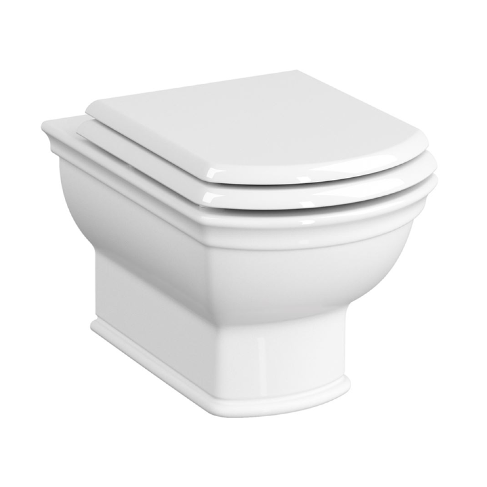 This traditional wall hung WC features a choice of standard or soft close toilet seat, with a rimless pan that helps promote hygiene and is easier to clean with a specially engineered diverter that sends water around the entire pan.
