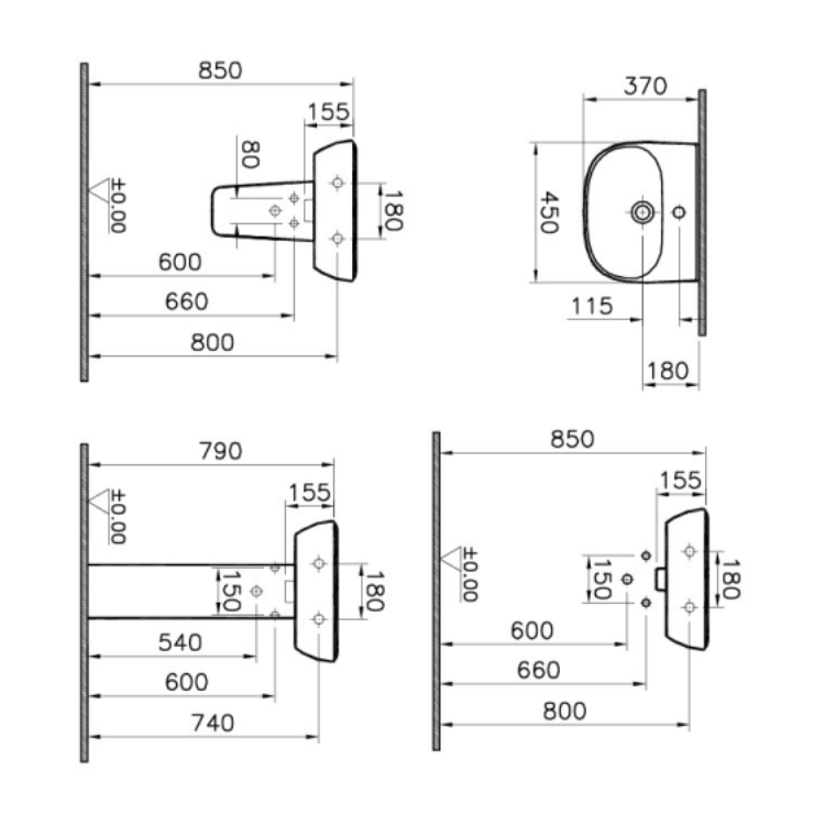 - Dimensions: 450mm width x 790mm height x 370mm depth