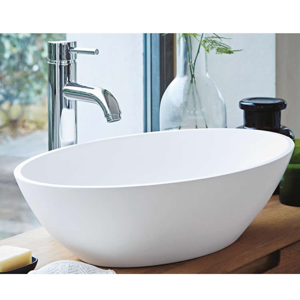 The smooth, curved sides of this spacious basin work perfectly within any contemporary bathroom. The minimalist design is complemented with a choice of gloss or matt white finish and a thin edge.