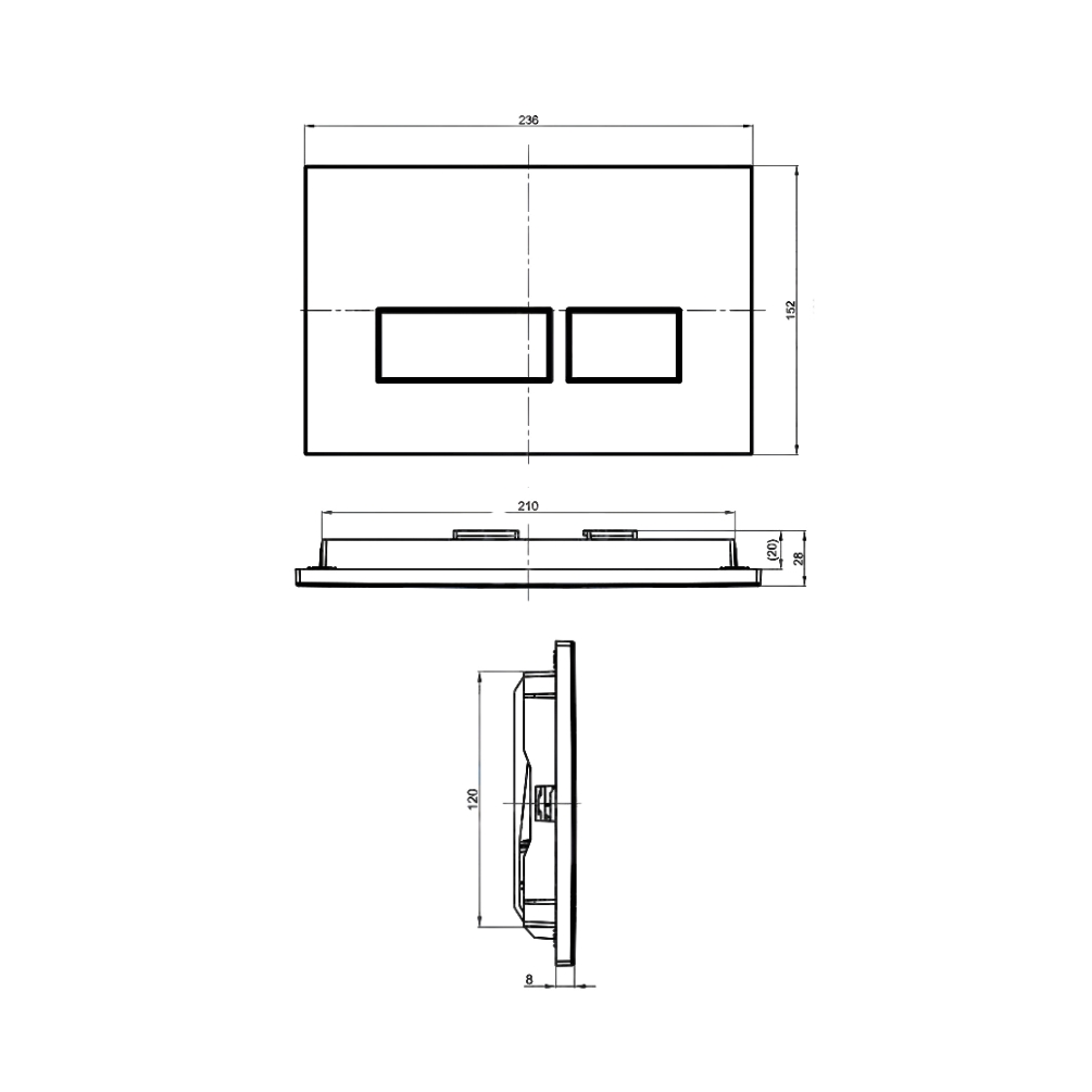 Measuring a compact 236mm wide by 152mm high, this rectangular flush plate features two buttons, one small and one large. These buttons offer intuitive control for dual flush concealed cisterns that provide full and half-flush functions, promoting water use efficiency. The flush buttons, square in shape, are seamlessly integrated into the flat panel, combining functionality with a clean, minimalist appearance. Finished in a relaxed matt black, this flush plate adds a touch of sophistication to modern bathroom designs - especially for those who incorporate black bathroom accessories and fixings.