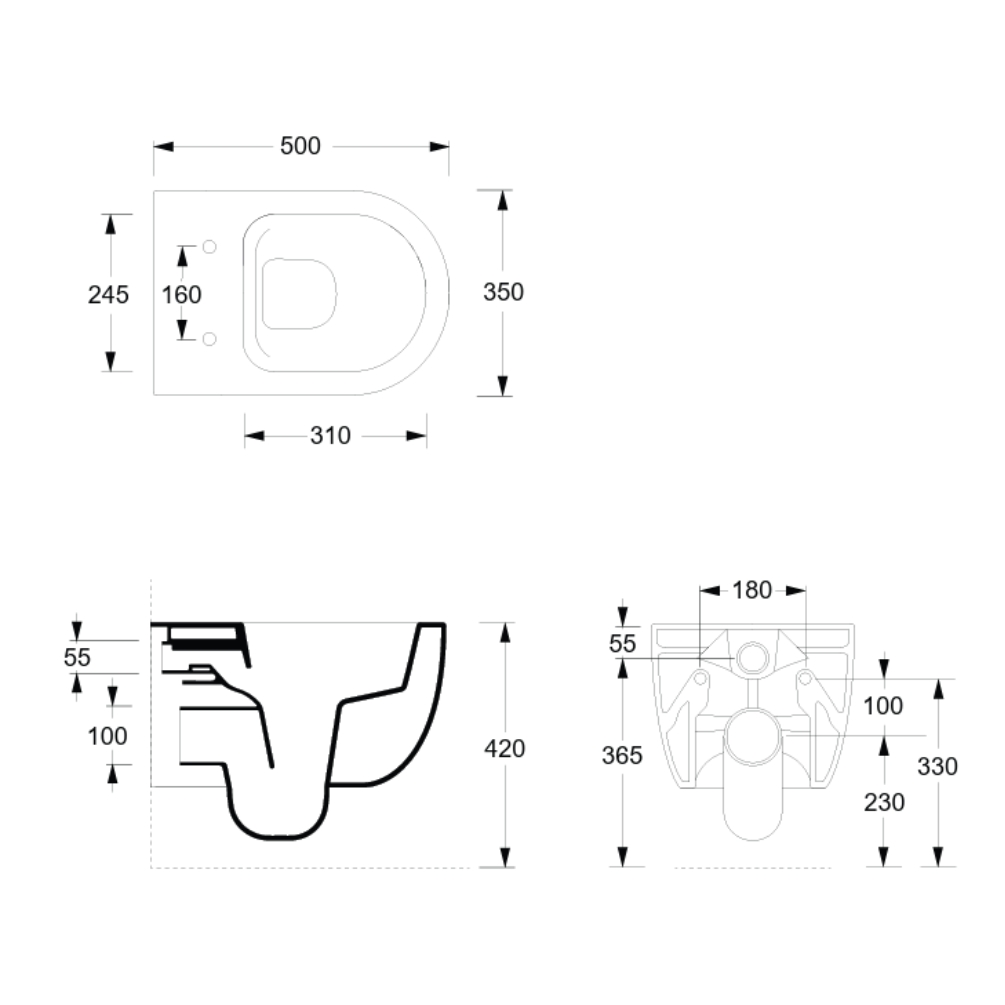 This finely executed wall-hung toilet hovers gracefully against your bathroom wall, establishing a floating aesthetic that optimises floor space whilst permitting seamless cleaning access beneath the fixture. The wall-integrated mounting system discreetly conceals all plumbing, crafting a streamlined, uncluttered visual narrative that amplifies your bathroom's sense of spaciousness. The elegant D-shaped form spans 500mm deep and 420mm high, featuring a refined profile that tapers smoothly towards its base.