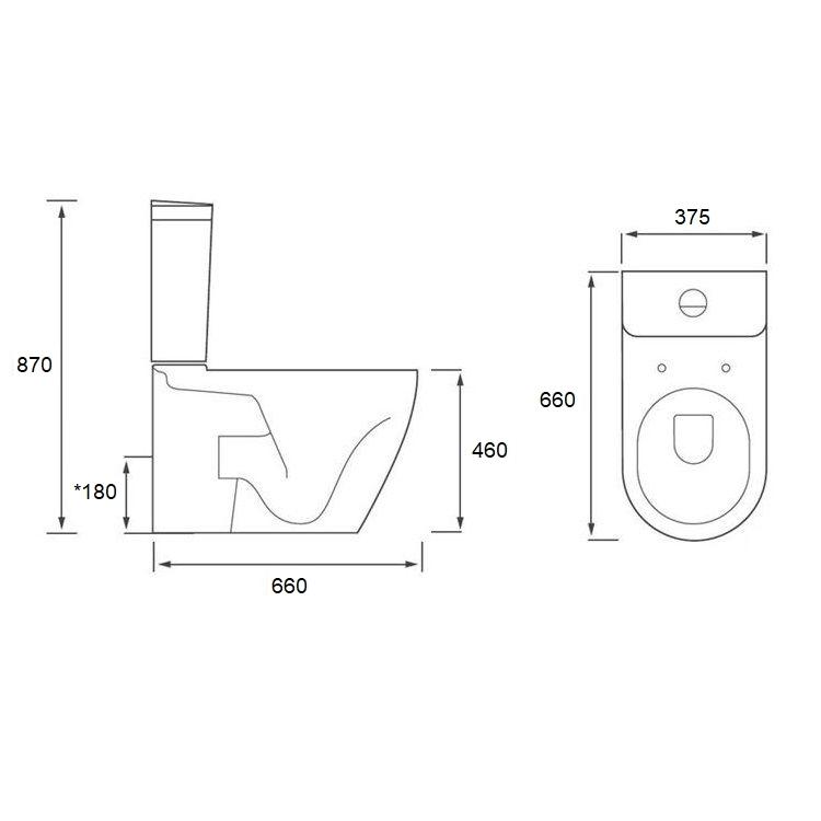 - Dimensions: 375mm width x 870mm height (including cistern) x 660mm depth